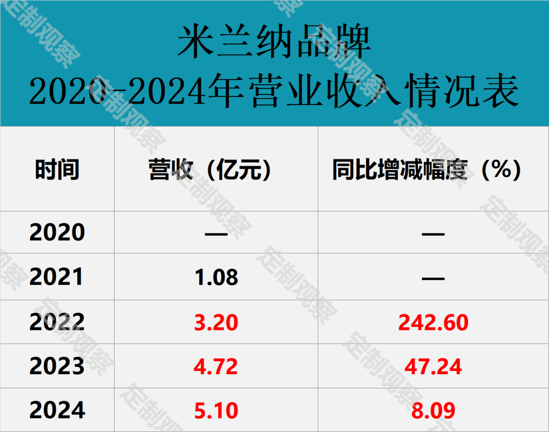 实际上,从披露财报的数据来看,索菲亚品牌作为公司的核心,2022年和2023年分别实现95.09亿元和105.52亿元营收,增长稳健。华鹤品牌同样保持稳定,2022年到2024年营收在1.63亿元至1.69亿元区间,虽有波动但总体稳定。米兰纳品牌表现尤为突出,自2021年崭露头角后,2022年、2023年和2024年分别实现3.20亿元、4.72亿元和5.10亿元营收,同比增速达242.60%、47.24%和8.09%,连续三年增长,为公司整体业绩增长注入新动力。
